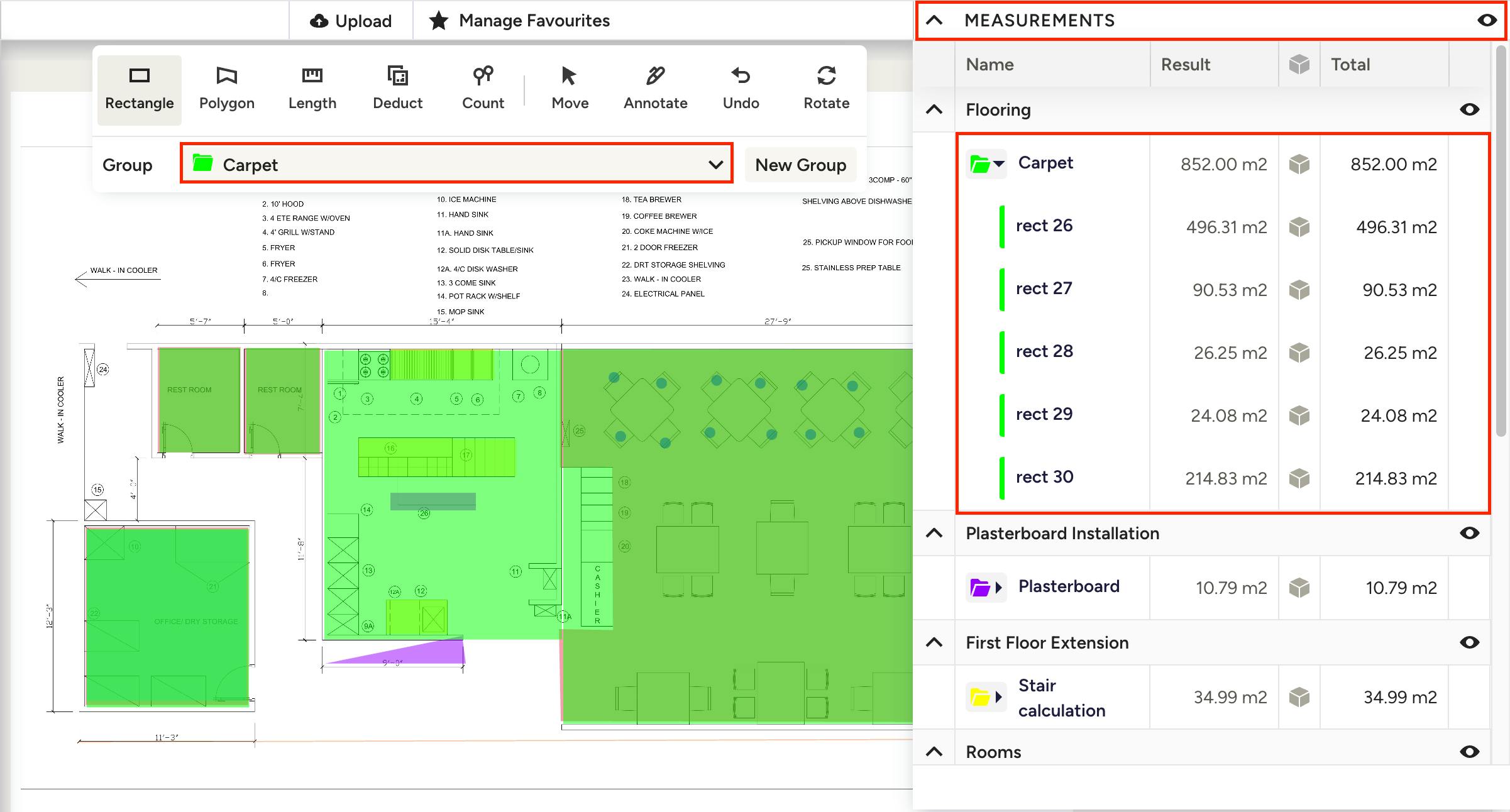 Grouping measurements makes it easier for you to get project material totals – you can even use your saved assemblies. Setting up your categories and groups early on in the measurement process will help you stay organised while creating your Takeoffs, plus it helps clients and/or other team members to understand what they're looking at.